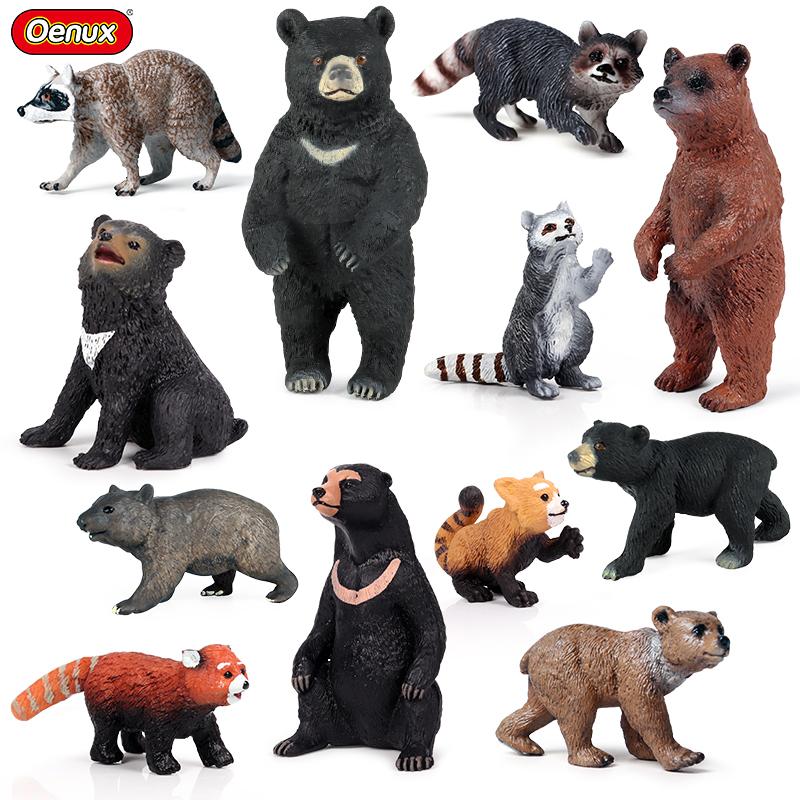 Oenux Simulation Wild Figurines Black Bear Wombat Raccoon Model Action Figures Forest Animals Toy Home Decoration Kids Education