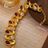 Medieval Vintage Jewelry Court Antique Geometric Classic Plated 18K Real Gold Gemstone Necklace Bracelet Stud Earrings