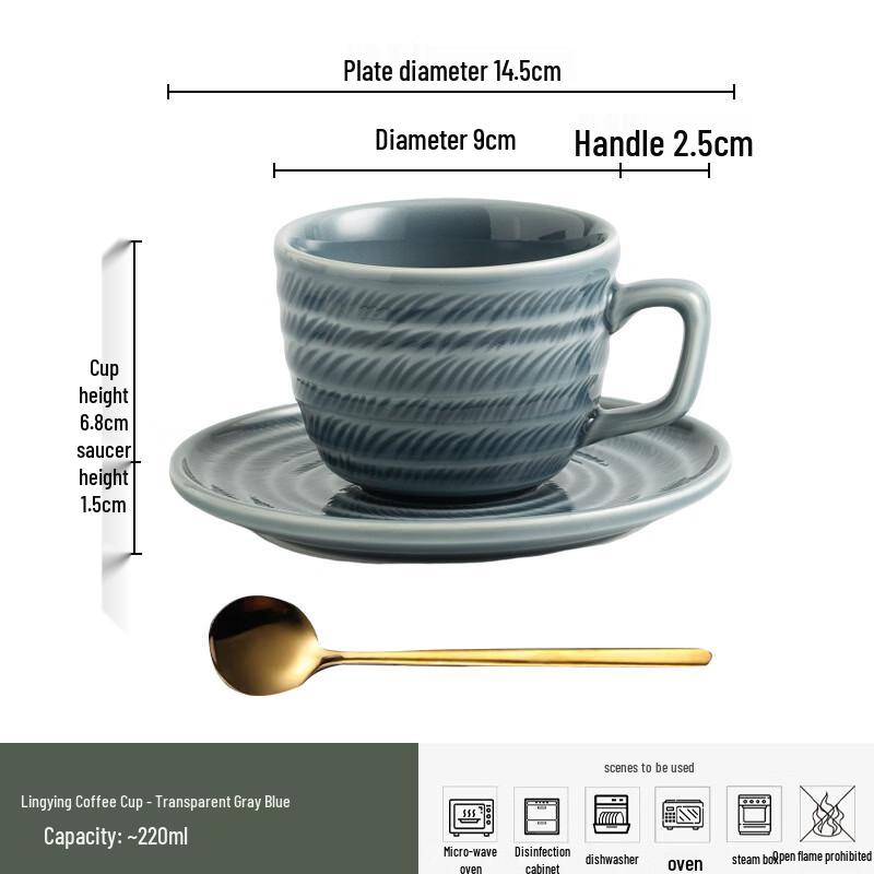 ZISIZ Kiln Glazed Coffee Cup and Saucer Set with Spoon