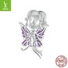S925 Srebro Fioletowy Motyl Elf Diy Bransoletka Zroszony Wisiorek