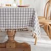 Silver Color Matching Plaid Polyester Fringed Tablecloth Geometric Rectangular Coffee Table Dining Table
