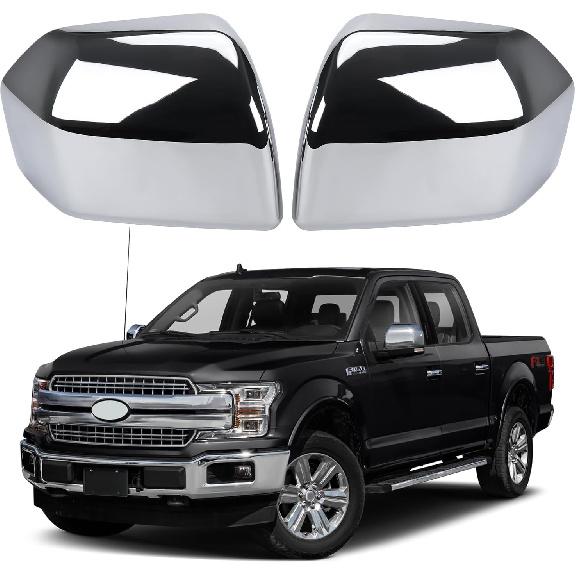 Chrome Direct Replacement Side Mirror Covers Caps For 2015- Ford F150, Directly Replace Style, Not Sticker Style