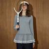 Coolhut Solid Color Simple Versatile Slimming Design with Lace Trim Round Neck 2025 New Women's T-Shirt