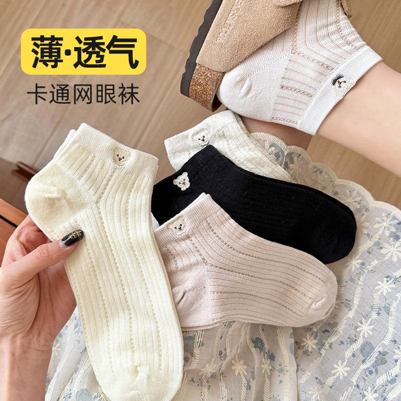 Summer Socks Thin Boneless Versatile Short Socks Wind Mesh Socks Breathable Low-Top Cute Short Socks Black