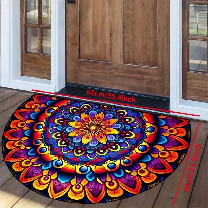 Bohemian Semi-Circular Carpet, Indoor And Outdoor Entrance Mat, Bathroom Door Mat, Soft And Anti-Slip Home Decoration.
