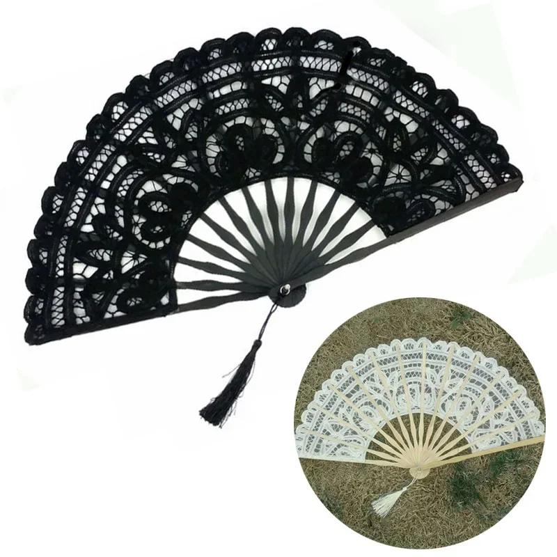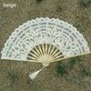 1Pc 27cm Portable Folding Fan Vintage Wood Lace Fan with Tassel Hollow Ribs Dance Performance Party Photo Props for Wedding