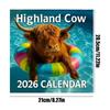 Kalendarz 2026 12-miesięczny Kalendarz z Krową Wyżynną 2026 Dekoracja Ścienna Styczeń-Grudzień Agenda Gruby Papier Miesięczny Planer dla Nauczyciela Ucznia Domu