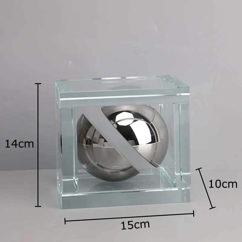 Geometric Square Block Silver Ball Crystal Ball Ornaments Desk Decoration Modern Crafts Abstract Artwork Room Aesthetic Decor