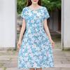 Letnia kobieta elegancka sukienka nowa dorywczo z krótkim rękawem ubrania w stylu koreańskim damska długa sukienka z nadrukiem w stylu vintage