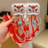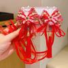 2pcs Bow New Year Ribbon Barrettes Lion Embroidered Bow Headwear Ancient Style Hair Clip Winter