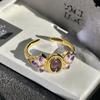 High-End Brown Colored Treasure Retro Flower Enamel Purple Dripping Oil Opening Ring Medieval French Retro Ring Woman