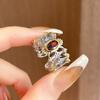 Gold Hollow Pattern Retro Open Ring High Sense Medieval Two-Color Classical Court Style Zircon Ring