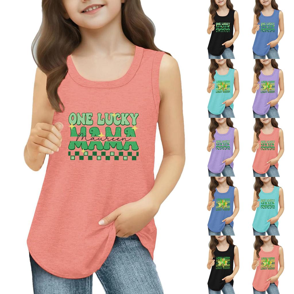 Dziewczęce Koszulki Bez Rękawów na Lato z Okrągłym Dekoltem Top Tank St. dzień Patryka