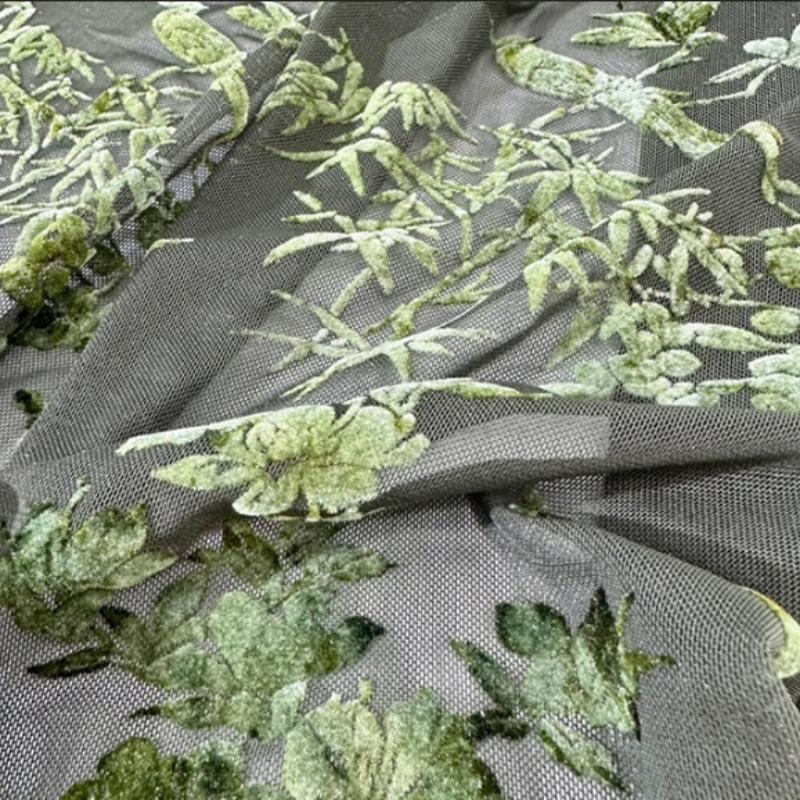 Ciemnozielony Brokatowy Siatkowy Materiał Flokowany Retro Żakardowy Afrykański Tiul Koronkowy Tkanina do Szycia Sukienki Cheongsam