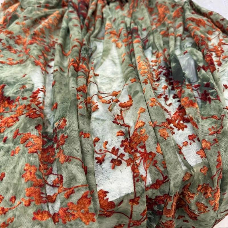 1/3/5yards Green Color Brocade Jacquard Burnout Velour Tulle Fabrics Saree Dirac Lace Flocking Mesh Fabric for DIY Sewing Dress