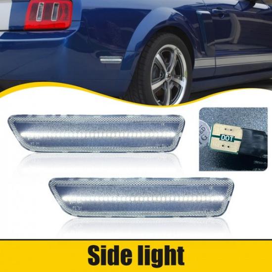 Clear Rear Bumper Reflector Side Marker White LED Light For Ford Mustang 2005-09