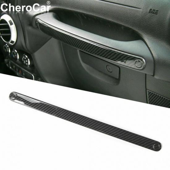Carbon Fiber ABS Copilot Handle Cover Trim Strip For 2011-2017 Jeep Wrangler JK