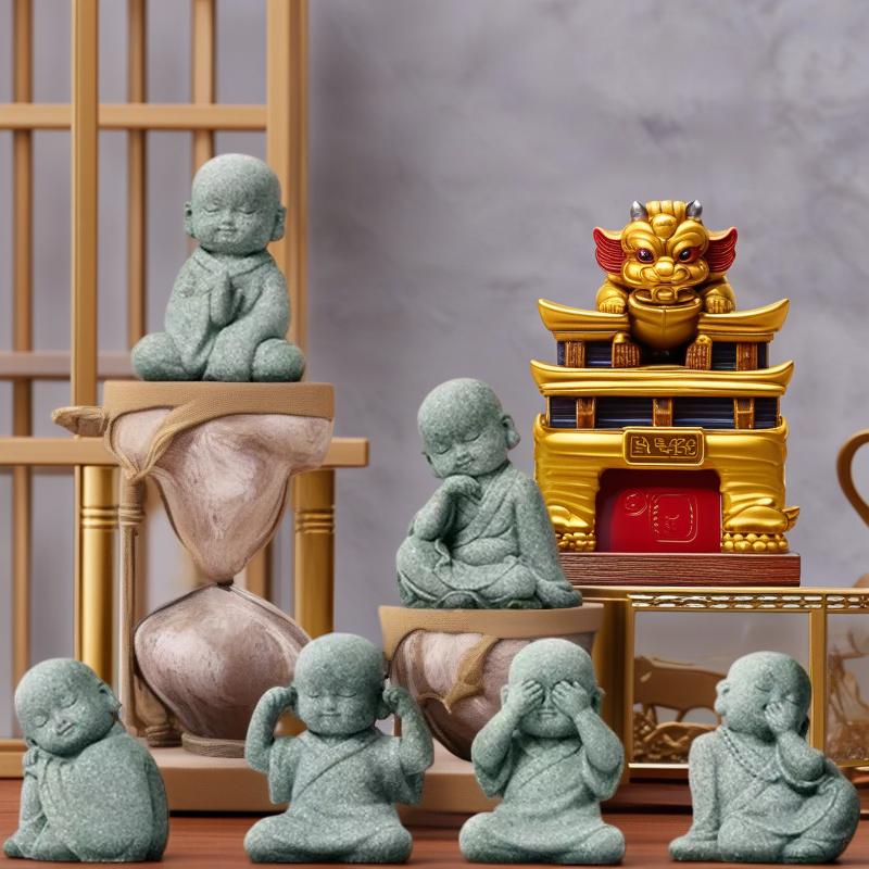 Sandstone Little Monk sculptures and figurines Cute Home Room Office car Table decoration and accessories High quality gifts