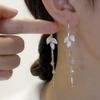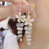 Luxury Crystal Long Tassel Ear Thread Green Shiny Zircon Flower Drop Earrings for Women Wedding Jewelry Gift