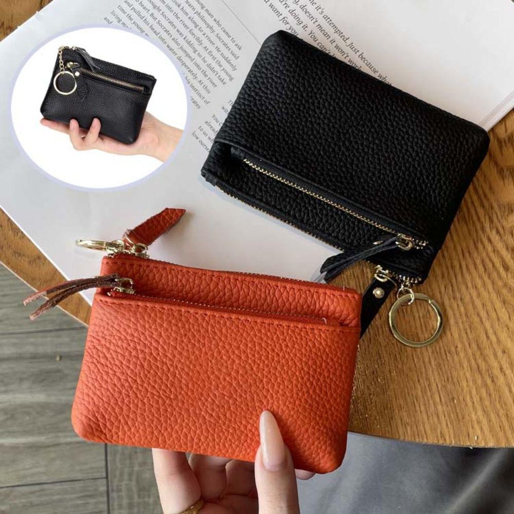 Zipper Small Cowhide Wallets Multi Card Slots Pu Coin Purse Elegant Lipstick Storage Bag Women
