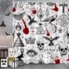 Scary Halloween Shower Curtain Vintage Skulls Eagles Pumpkins Roses Boho Polyester Fabric Bath Curtain Bathroom Decor with Hoo
