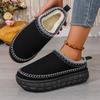 Women’s Slip-On Platform Folk Style Half Boots, Thick Sole, Warm and Comfortable, Wide Size
