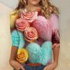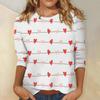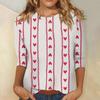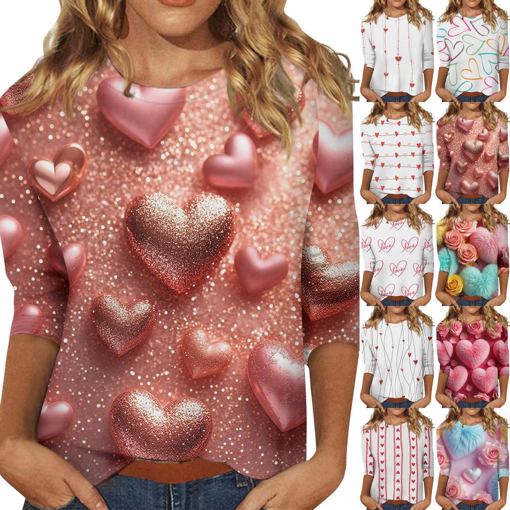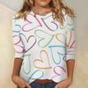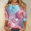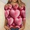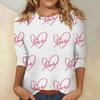 Damski top z nadrukiem walentynkowym, modny, casualowy, z rękawem 3/4 i okrągłym dekoltem