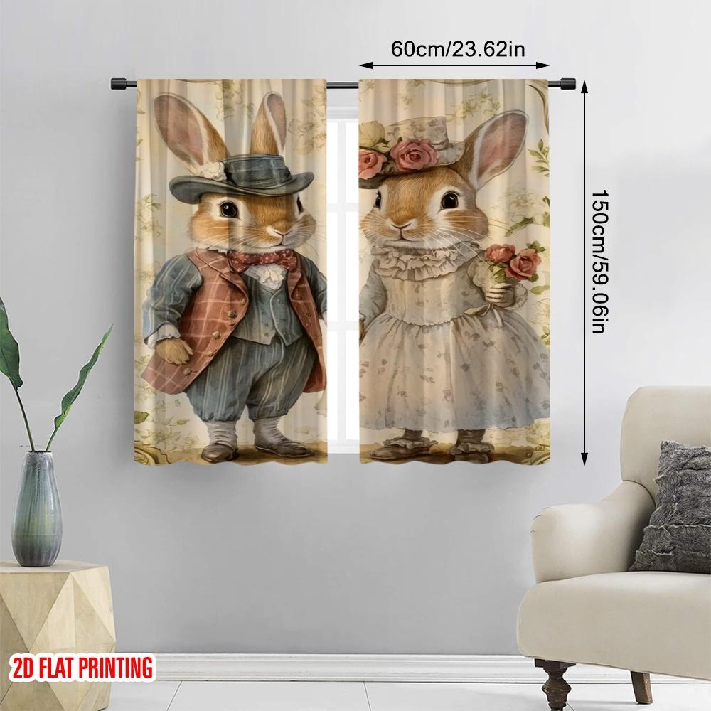 2pcs,2D plane printing Curtains Bunny Wedding Bliss Versatile 100% Polyester (without rod) Room Decor Ldeal for Living Room and