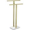 Gold,WEIDPHL Tall Standing Towel Rack, Double-T Shape Tall Bath Towel Sheet Holder with Marble Design Base, 2-Tier Towel Stand for Bathroom Floor,