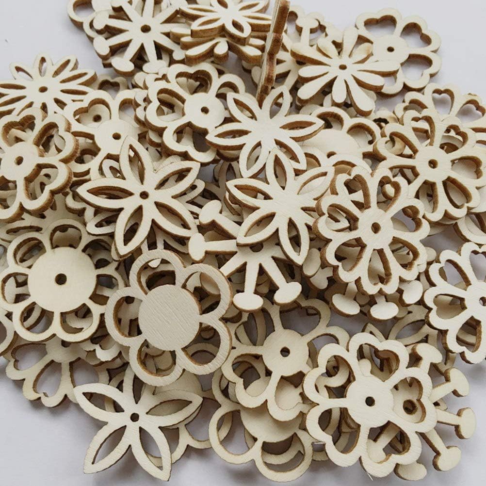 Amosfun 100PCS Wooden Flower Embellishments Patterns Cutouts Wooden Pieces Craft Ornament for DIY Art