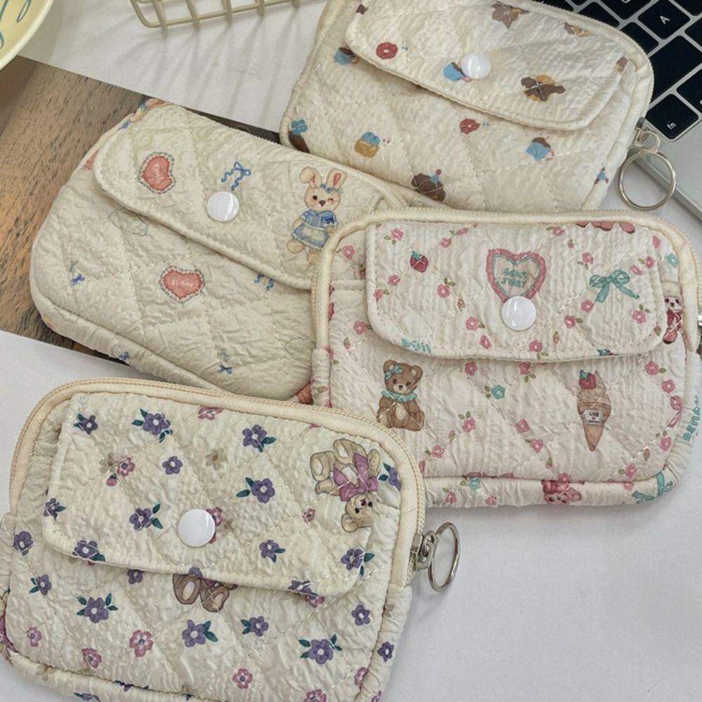 Pinted Small Makeup Lipstick Bag Large Capacity Mini Canvas Storage Bag Floral Coin Purse Students