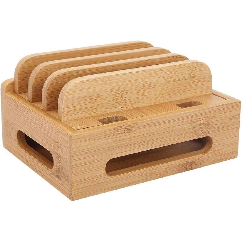 Oumefar Bamboo Multi-Device Stand Holder Charging Station Phone Tablet Charger Organizer 4 in 1 Charging Station for Multiple Devices for Meeting