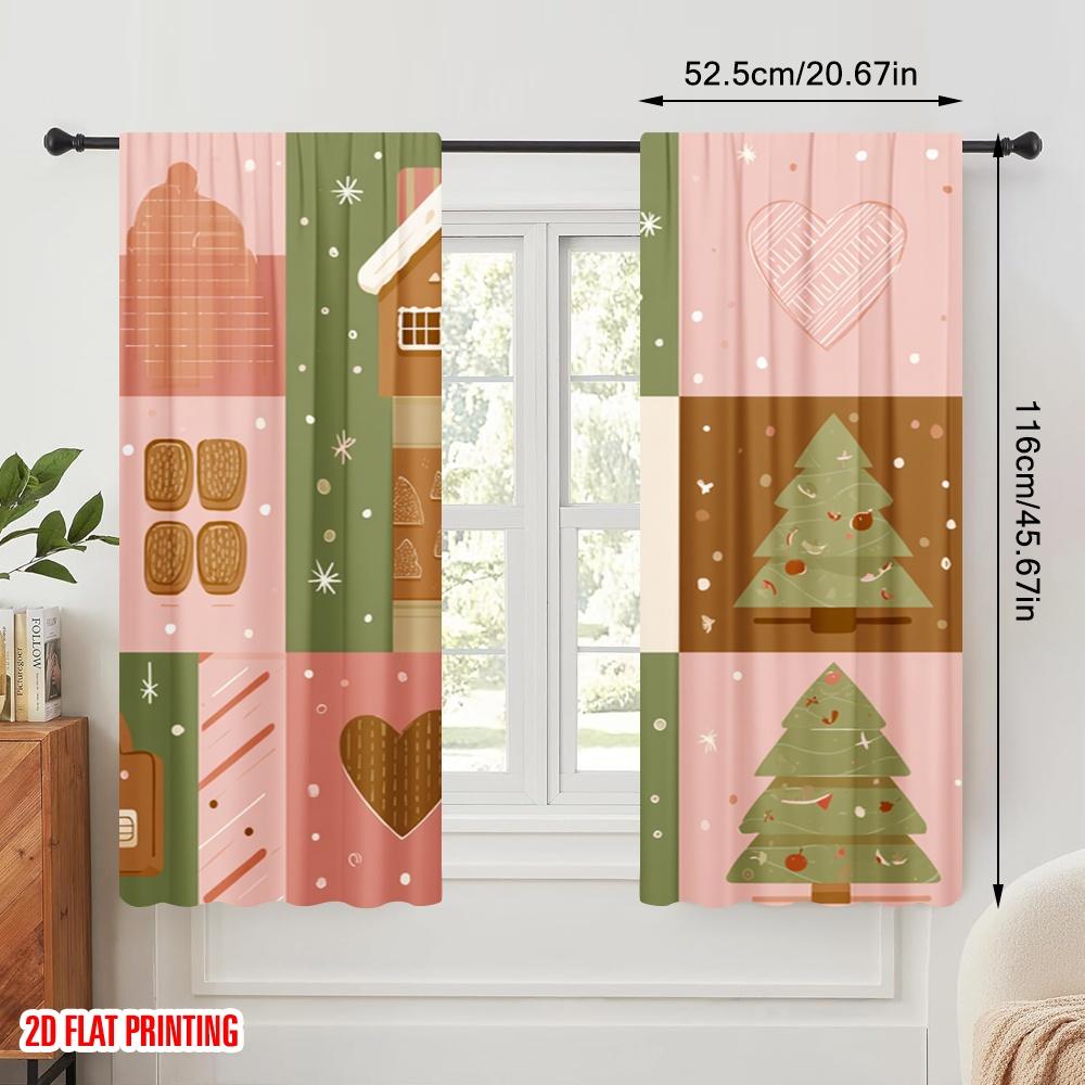 2pcs,2D plane printing Curtain Fabric Christmas Day Versatile Fabric (without rod) Outdoor Decorations Ldeal for Living Room,