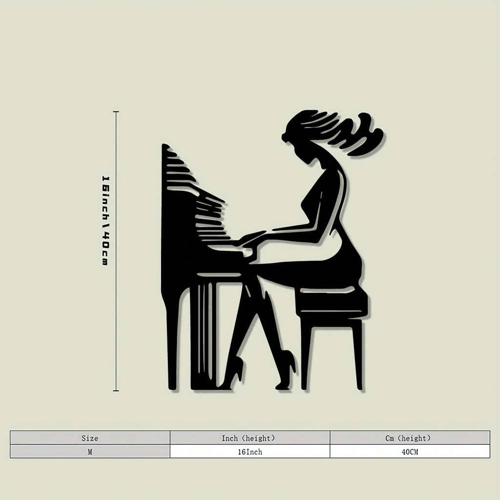 Elegant Piano Player Metal Mural Black Outline Statue Retro Iron Music Room Decor Gift