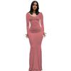 Sukienka Maxi z Długim Rękawem dla Kobiet Jesienna Codzienna Sukienka Długa z Okrągłym Dekoltem Dopasowana Bodycon Marszczona Sukienka Koktajlowa