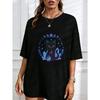 Women Casual Short Sleeve T Shirt White Black Cat With Moon Phases And Crystals Print For Daily Wear And Magic Theme Outfits