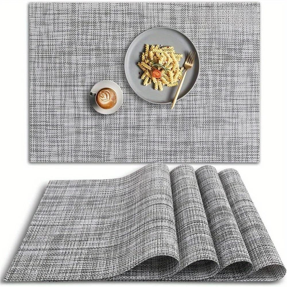 2 PCs Washable Vinyl PVC Placemat, Non-Slip Placemats, Heat Resistant Place Mats, Gray Placemats
