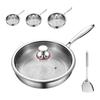 26CM Wok Pan with Clear Glass Lid 304 Stainless Steel Uncoated Cooking Pan Even Heating Stir-Frying Pan Kitchen Cookware