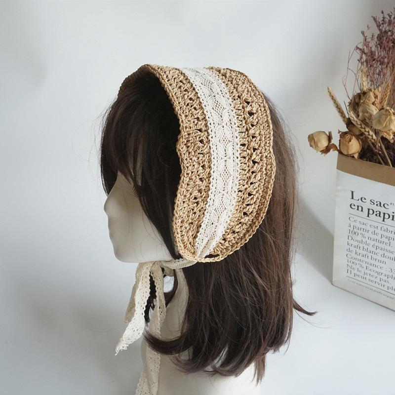 Japanese French Retro Hand-Woven Lace-Up Hair With Hat Female Spring Summer Vacation Cute Sweet Little Fresh
