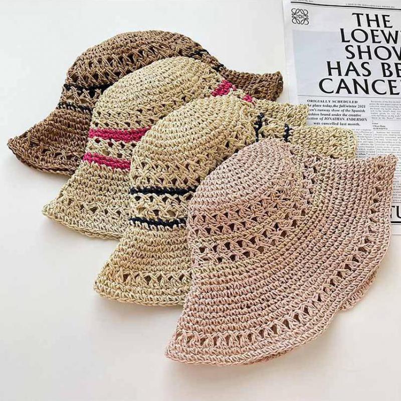 Summer Hats For Women Striped Hollow Sun Hat Foldable Sunshade Fisherman Cap Bucket Hat Seaside Travel Sunhat Beach Accessories