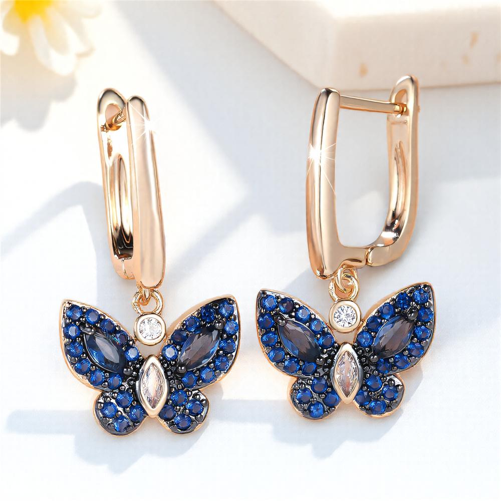 Female Luxury Blue Zircon Small Stone Cute Butterfly Hoop Earrings For Women Vintage Gold Color Wedding Jewelry