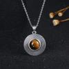 Stainless Steel Irregular Pendant Necklace for Men, Vintage Natural Agate Tiger Eye Stone Necklace, Punk Jewelry Gift