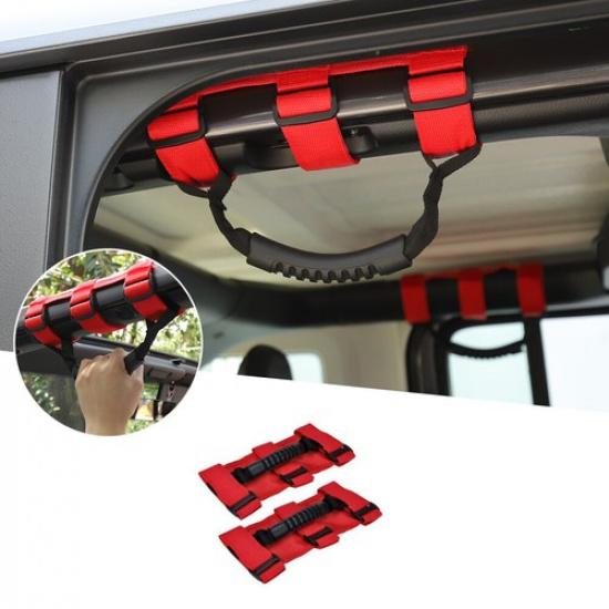 2x Top Roof Roll Bar Grab Grip Handles for Jeep Wrangler CJ YJ TJ JK JKU JL Red