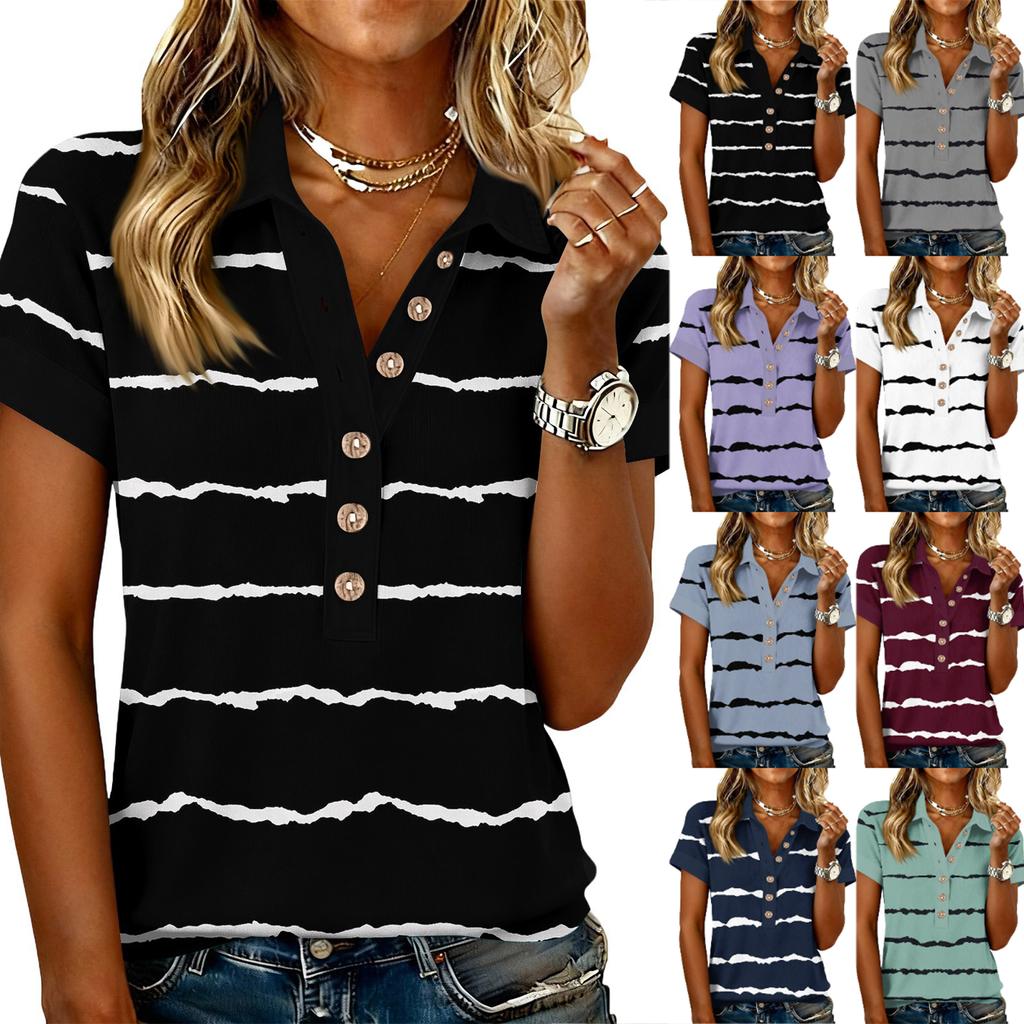 Women's fashionable casual summer V,neck patchwork short,sleeved striped print top