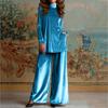 Women's Fashionable Casual Velvet Loose,fitting High,neck Slit Top And Wide,leg Pants Set