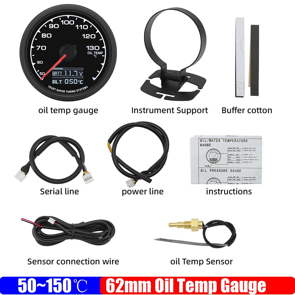 ZMFJH 7 Color Backlight 62mm Oil Temperature Gauge with Sensor 10mm Digital 50~150℃ Oil Temp Meter+Holder Bracket Auto Car 12V