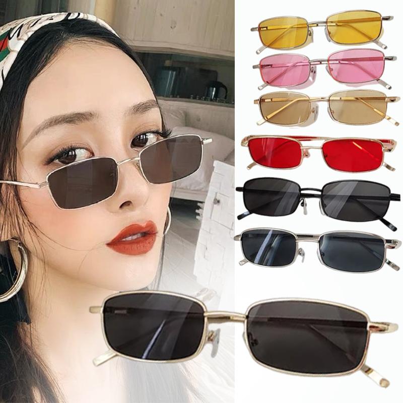 Rectangle Sunglasses Men Women Vintage Driving Sun Glasses Retro Small Square Eyeglasses Metal Frame Colorful Lens Eyewear