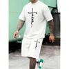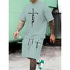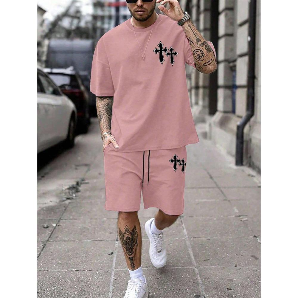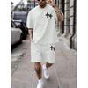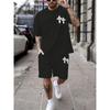 Męski Letni Zestaw Krótkich Spodenek z Krótkim Rękawem z Nadrukiem Krzyża Casualowy Modny Temperament 2-częściowy Streetowy Sesja Wakacyjny Zestaw T-shirtu z Okrągłym Dekoltem
