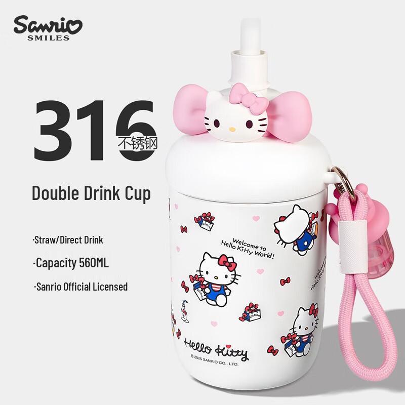 Kubek szklany ze słomką o dużej pojemności Hello Kitty z pokrywką dla dziewczynek od Sanrio