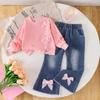 Autumn New Casual Children's Clothing Pink Bow Long Sleeve Sweatshirt Jeans Cute Fashion Girls